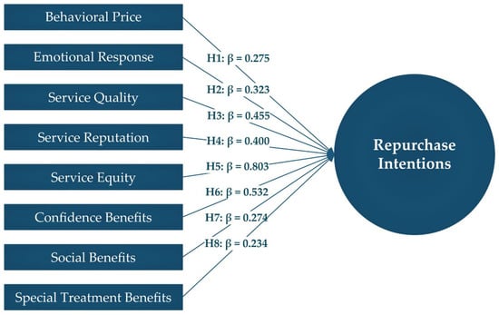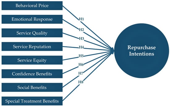 Furthermore, Ruiz et al. [24] stated that service equity is a source of value creation as restaurant communications and customers’ interactions with the service impact their impressions of the restaurant. A strong brand generates feelings of intimacy, affection, and trust and significantly affects customer value perceptions [61]. Hashim and Haque [62] discovered that the service equity of resort customers significantly impacted their repurchase intention to stay at resorts. Therefore, the current study contends that service equity provides value to customers by offering a consistent and powerful value proposition and customer experience that will satisfy customers and keep them coming back. Therefore, we can hypothesize that: