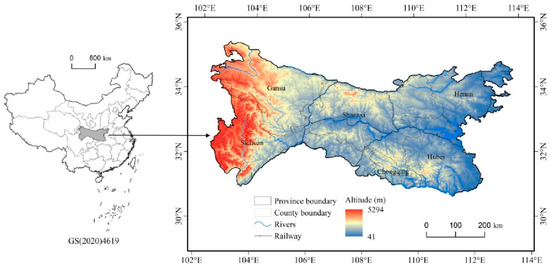The North–South Transitional Zone of China is located between 102°54′–112°40′ E and 30°50′–34°59′ N, representing the largest ecological corridor on the Chinese mainland (Figure 1). It is also an important water conservation area for the South–North Water Diversion Central Project and comprises a vast region of underdeveloped mountainous landscape. The North–South Transitional Zone has become a region with a wide distribution of China’s current population shrinkage, and the long-term population outflow has led to a substantial lag in the socio-economic development level of the region [38]. According to the “National Science and Technology Basic Resources Survey Special Project: Comprehensive Scientific Investigation of the North–South Transitional Zone of China”, the whole region comprises six provinces and cities (namely Henan, Shaanxi, Gansu, Hubei, Chongqing, and Sichuan), covering 41 municipal districts, 24 county-level cities, 107 counties, 1 forest area, and 1 autonomous county, with an area of about 222,300 km2. The altitude of the region is between 13 and 5528 m; the terrain is high in the west and low in the east; and the topography is dominated by mountains, basins, and hills. In 2020, the total population of the North–South Transitional Zone of China was 71,442,800; its proportion of the country’s GDP was 3.84%; and the per capita GDP was 53,317 yuan, which was only 75.2% of the national average. Overall, the study area is characterized by significant variation in natural environmental background and socio-economic development, a weak industrial support capacity, prominent poverty, and intensive ecological construction projects.