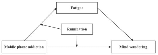 Previous studies have examined the negative effects of mobile phone addiction on mental health and have yielded a wealth of research findings. First, as a kind of behavioral addiction, mobile phone addiction has a serious negative impact on individuals’ behavior adaptation. For example, Lian et al., [10] demonstrated that mobile phone addiction was an important reason for individuals’ irrational procrastination. Second, as a kind of behavior adaptation problem, mobile phone addiction could also make individuals fall into serious emotional adaptation problems. For instance, Lian et al. [11] showed that mobile phone addiction could induce individuals’ ruminative responses and cause psychological distress. This conclusion has also been confirmed by many studies [12,13,14]. Besides, studies also revealed a negative relationship between mobile phone addiction and sleep quality [15,16], as well as a positive relationship between mobile phone addiction and cognitive failures [17,18]. As a mobile communication device with strong user stickiness, mobile phones were bound to have an impact on the individual’s state of attention or consciousness, especially for individuals with mobile phone addiction [19]. A few studies have found that individuals who are addicted to the Internet and Internet gaming have inattention problems, such as mind wandering [20,21]. However, few studies focus on the association between mobile phone addiction and individuals’ attention quality and state of consciousness. The mediating mechanisms and contextual factors underlying this link were also unclear. To fill this gap, based on the executive-control failure hypothesis [22,23] and resource-control theory of mind wandering [24], the present study will detect the relationship between mobile phone addiction and mind wandering as well as take fatigue as a mediator and rumination as a moderator to reveal the mediation and moderation mechanisms that link mobile phone addiction with mind wandering. The results of this study will not only help us understand the psychological mechanism of mobile phone addiction leading to individuals’ mind wandering comprehensively and profoundly, but also reveal the potential individual differences in this psychological mechanism. The findings of this study will also sound an alarm for mobile phone users to avoid excessive use of mobile phones and the potential adverse effects of non-adaptive mobile phone use (mobile phone addiction) on their attention quality or state of consciousness.