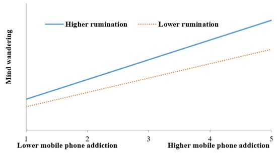 Rumination will moderate the link between mobile phone addiction and mind wandering, this effect will be stronger for individuals with higher rumination.