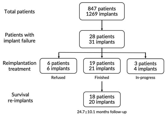 19]. On the other hand, a study by Wang et al. showed a high success rate (90.6%) and cumulative survival rate (94.6%) in 67 reinserted implants at an average of 67 months after surgery, which might be associated with the early failures of primary implants [