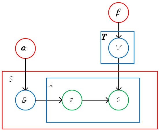 and β are hyperparameters of the Dirichlet distribution. S is the number of segments of the truck driver’s braking data. T is the number of brake patterns. ϑ is polynomial distribution of brake patterns for each segment of brake data on all brake patterns, in this case Dirichlet distribution. is the polynomial distribution that each braking mode obeys in the brake behavior dictionary, in this case the Dirichlet distribution. A is the number of brake behavior words; z is the brake mode; o is the word for braking behavior.