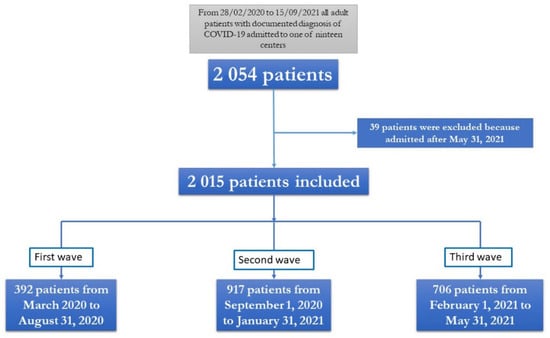 We considered three different periods of admission: the first included patients admitted from March 2020 to 31 August 2020; the second included all patients admitted from 1 September 2020 to 31 January 2021; the third included all patients admitted from 1 February 2021 to 31 May 2021.