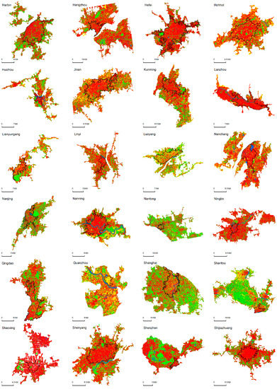 - Song, X.; Feng, Q.; Xia, F.; Li, X.; Scheffran, J. Impacts of changing urban land-use structure on sustainable city growth in China: A population-density dynamics perspective. Habitat Int. 2021, 107, 102296. [Google Scholar] [CrossRef]