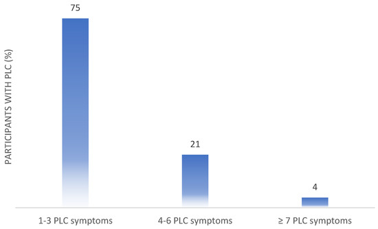 On average three PLC symptoms (IQR: 2–3.5) were reported (Figure 1).