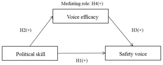 A high level of political skill means that individuals can have considerable network resources, and, at the same time, build a good image in front of other members of the organization, which makes the suggestions of voicers widely valued by members of the organization [67]. Additionally, the proper use of political skill can regulate the relationship between employees, colleagues, and bosses, and reduce the risk of interpersonal conflict and negative consequences that may be brought about by the voice behavior. Then employees’ belief in voice has been improved [55]. According to previous studies, employee safety voice behavior is often based on informal channels such as verbal communication [10]. Individuals with a higher level of political skill can choose a good object, timing, occasion, technique, and form of voice based on specific circumstances. This ability will positively affect the individual’s voice efficacy and enhance employees’ belief incompetent voice behavior.