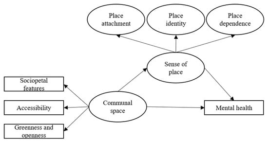 Conceptual framework of communal space, sense of place and mental health.