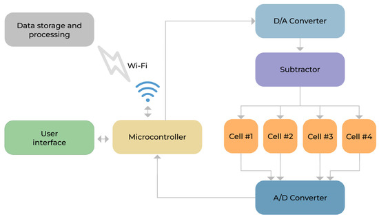 The prototype developed is a low-cost device that constitutes a potentiostat capable of simultaneously controlling electrochemical cells, performing cyclic voltammetry, preprocessing, and sending the results to an external storage and processing device. The device has a touch-sensitive screen, an interface with the user, a rechargeable internal battery, a microcontroller within an integrated system on the chip circuit, and operational amplifiers (in the configuration of subtractor) to regulate the voltages in the electrochemical cells. These features allow the user to control all peripherals and communicate with the external environment via a Wi-Fi network to exchange information with computers that store and post-process the data. In addition, it has an analog-to-digital converter (A/D) responsible for data acquisition, a digital-to-analog converter (D/A), and operational amplifiers to regulate the voltages in the electrochemical cells.