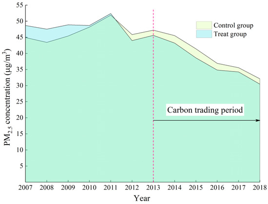 PM2.5 concentrations before and after the initiation of carbon trading.