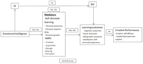 - Shafait, Z.; Khan, M.A.; Bilan, Y.; Oláh, J. Modeling the mediating roles of self-directed learning and knowledge management processes between emotional intelligence and learning outcomes in higher education. PLoS ONE 2021, 16, e0255177. [Google Scholar]
