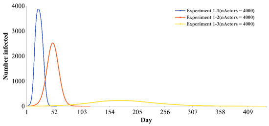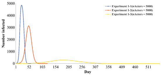In this paper, a variety of simulation experiments are conducted. The first set of experiments consists of basic experiments based on three kinds of going-out needs (Table 2, experiments 1-1, 1-2, and 1-3). By setting the intensity of the three policies to be loose, moderate and strict, their effectiveness in epidemic prevention and control could be compared.