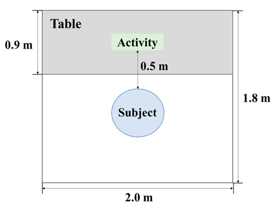 This study was conducted in an experimental space (180 cm × 200 cm) in the greenhouse of the Konkuk University campus in Seoul (Figure 1). In order to minimize external visual stimulation, a white cardboard was laid out in front of the desk, and ivory-colored curtains were installed on both sides. The environmental conditions of the experimental space were an average temperature of 27.3 ± 3.0 °C (O-257; DRETEC Co., Saitama, Japan), average humidity of 43.3 ± 15.8 % (O-257; DRETEC Co., Saitama, Japan), and average illuminance of 2097.9 ± 1076.8 lx (Lux Light Meter; Przemek Pardel Co., Zurich, Switzerland).