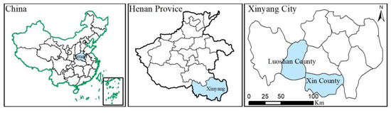 Our study was carried out in Xinyang City, Henan Province, Central China (Figure 2), with geographic coordinates ranging from 113°45′ to 115°55′ E and 31°23′ to 32°24′ N. The topography of Xinyang is high in the south and low in the north, and it is located in the transition zone from subtropical to warm temperate. It has a distinct monsoon climate, which is characterized by abundant sunshine and rainfall. In 2020, the total population of Xinyang city was 6.23 million, including 600,000 tea farmers. Its GDP is about $40 billion, of which the tea output value exceeds $1.7 billion [40]. The tea of Xinyang is exported to more than 20 countries and regions around the world [41]. Tea planting covers the entire territory of Xinyang City. The area of tea plantations is equal to 110.37 thousand hectares, with an average annual output of about 70,000 tons of tea. Tea plantation area and output account for 98% and 99% of Henan Province, respectively [42]. There are three main reasons why we chose this area for our research. First, Xinyang is an important green tea production area. Xinyang Maojian Green Tea is one of the top ten famous teas in China, with a brand value of over $1 billion. Secondly, Xinyang has a long history of tea planting, and the tea there is primarily planted by small-scale tea farmers. In addition, Xinyang Maojian Green Tea obtained the National Agricultural Product Geographical Indication Certification in 2020, and tea farmers were included in the NTP for management. However, NTP has not been widely adopted by small-scale tea farmers. Therefore, exploring small-scale tea farmers’ perception of the NTP can not only help us understand the actual needs of tea farmers, but also has significance for the tea industry management that aims to promote the NTP.