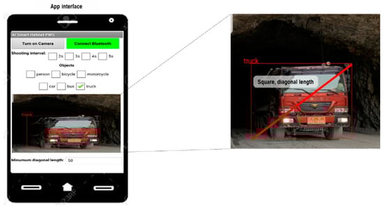 - An analysis is performed on the smartphone to determine whether the object information sent from the server contains any user-set hazardous objects. If such an object is detected, it is enclosed by a red box, and its name is displayed on the smartphone.
