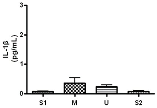 Serum IL-1β concentration in different locations. Values are mean ± S.D. S1: Before start in Seoul, M: Moscow U: Ulaanbaatar S2: Return to Seoul.