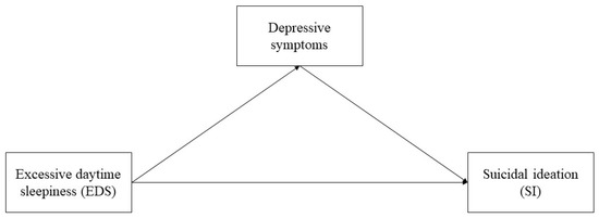 Currently, there are few studies on EDS, depressive symptoms, and SI among Chinese college students. Although some studies have demonstrated that EDS, depressive symptoms, and SI are highly correlated [21,26], there is still a lack of research on the causes and mechanisms of the association between the three. Therefore, this study was conducted to investigate the possible mechanisms of EDS and depressive symptoms leading to SI by constructing a database of Chinese college students. In detail, we (1) explored the association between EDS, depressive symptoms, and SI among Chinese college students; and (2) examined whether depressive symptoms could mediate the association between EDS and SI among college students, as shown in Figure 1.