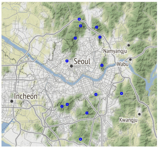 - Byun, W.; Lee, J.; Seo, E.; Hong, Y.; Kim, T. A study on Urban Resident’s Preference for Developing Urban Recreational Forest—The Case Study on Seoul. J. KIFR 2003, 7, 19–25. [Google Scholar]