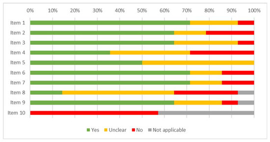 - Whiting, P.F.; Rutjes, A.W.S.; Westwood, M.E.; Mallett, S.; Deeks, J.J.; Reitsma, J.B.; Leeflang, M.M.G.; Sterne, J.A.C.; Bossuyt, P.M.M.; QUADAS-2 Group. QUADAS-2: A revised tool for the quality assessment of diagnostic accuracy studies. Ann. Intern. Med. 2011, 155, 529–536. [Google Scholar] [CrossRef]