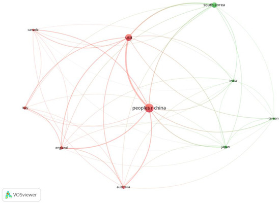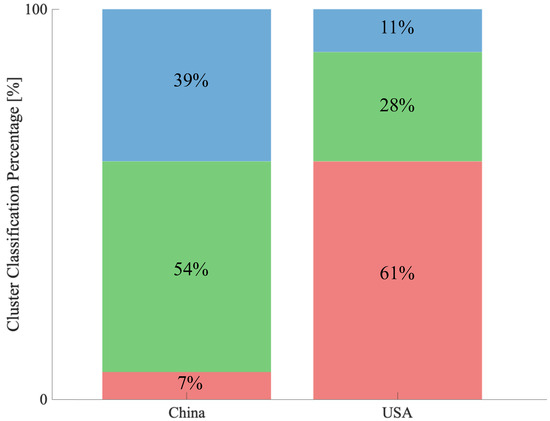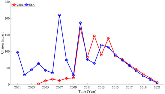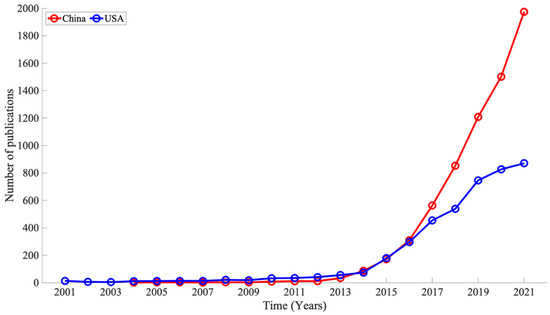 3.3. Comparing Two Countries’ Contributions to the Research Domains (China vs. USA)