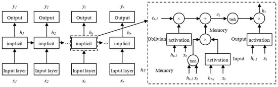 34]. The gating mechanism is introduced in comparison to the original RNN, and it may recognize long-term dependencies in the input data. It can address issues like gradient explosion, gradient disappearance, and the difficulty to manage long-term dependencies brought on by intricate network layers. Although URT’s passenger flow significantly varies over the short period, it still depends on changes in both the long-term and current passenger flow levels. Therefore, accurate short-term passenger flow estimates can be made using the LSTM model.