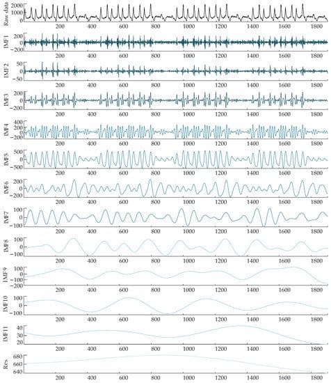 30]. Through the addition of adaptive noise, the modal effects are further diminished. This algorithm can decompose complex time series data into intrinsic modal functions (IMFs) and a residual (Res), so as to effectively solve problems such as boundary effects and low computational efficiency that EMD [