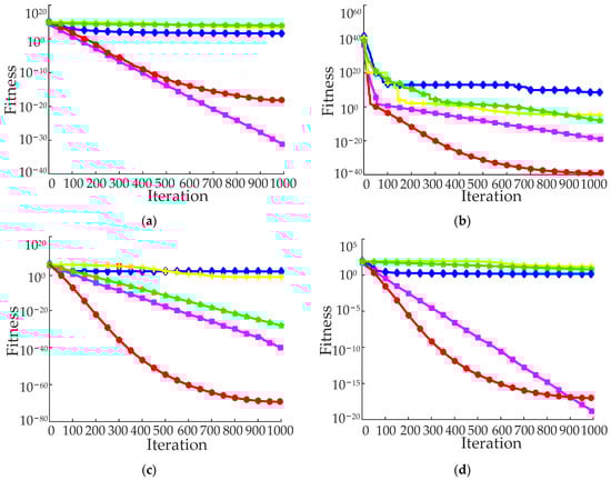 Figure 5 displays the ideal iterative convergence curves for each benchmark function. The convergence curve of the IPSO algorithm on most benchmark functions is below that of other algorithms. It demonstrates that IPSO not only has great convergence accuracy throughout the whole search process for each specified benchmark function, but also a faster convergence speed. The IPSO algorithm’s adaptive strategy significantly enhances the efficiency of particle optimization, avoids PSO’s inefficient iteration process, and achieves a balance between local and global search.