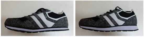 Running trials were conducted on a 30 m indoor running track at the Biomechanics Laboratory of Beijing Sport University. First, the marker−based motion analysis system was calibrated, and the test can only be started when the error of 500 mm between the two markers is less than 0.2 mm. Participants were required to run wearing flat running shoes and conventional running shoes with a 10 mm drop, in random order. Both shoes have the same structure and appearance, and the soles are made of ethylene vinyl acetate (EVA) and rubber with the same thickness in the forefoot part of 12 mm (Figure 1). Participants performed three overground running trials for each shoe condition; trials were accepted if the speed was 4.0 m/s (±5%), and right lower extremity data were collected [41].