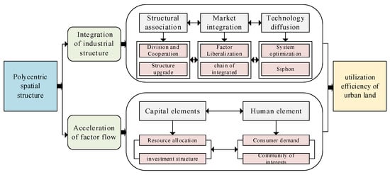 The polycentric spatial structure of UA can affect ULUE in two ways: the integration of an industrial structure and the acceleration of factor mobility.