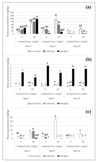 Phytoextraction Potential of Sunn Hemp, Sunflower, and Marigold for Carbaryl Contamination: Hydroponic Experiment