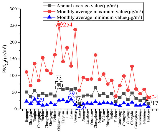 The PM2.5 values in 31 major cities in China from 2016 to 2020 are shown in Figure 1.