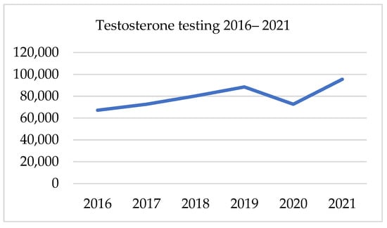 Testosterone testing in 2016–2021.