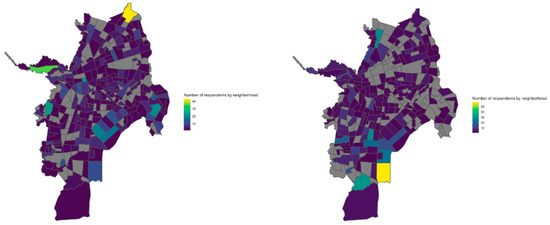 Survey respondents across the city for 2019 and 2020: the map on the left shows data from 2019, the map on the right shows data from 2020.
