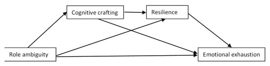 Consistent with Hypothesis 6, role ambiguity was negatively and indirectly related to burnout, mediated by cognitive crafting and resilience. The sequential indirect effect of role ambiguity on emotional exhaustion, via both mediators in the series (cognitive crafting and resilience), was significant, positive, and smaller than the direct effect (b = 0.08, 95% CI [0.021, 0.193]). Moreover, there was also a positive indirect effect of role ambiguity on emotional exhaustion through cognitive crafting (b = 0.35, 95% CI [0.182, 0.568]) and resilience (b = 0.29, 95% CI [0.100, 0.577]). Overall, there was partial mediation support for the proposed theoretical model. Thus, when acting in a chain, cognitive crafting, and resilience buffered the negative impact of role ambiguity on emotional exhaustion.