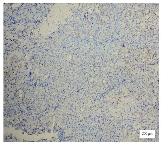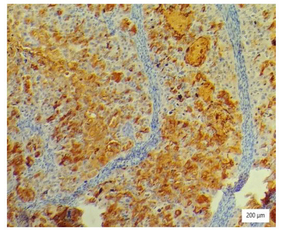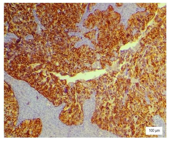 The etiopathogenesis of cervical clear cell carcinoma remains hazy, but facts show that compared to squamous cell carcinoma, growth is slower, distant metastasis can be determined faster, and patients are predisposed to late recurrence. However, cervical clear cell carcinoma in pediatric populations tends to be associated with DES exposure [36], although there are cases reported in literature that come from countries where this compound was banned a long time ago or was never used, such as the United States, the Netherlands, Norway, or Japan [18]. All of these data suggest that DES may play an important but not necessarily a decisive role in the etiopathogenesis of this cancer type, with molecular genetics demonstrating that the overexpression of the p53 protein, HPV infection, bcl-2 overexpression, and microsatellite instability might be involved [16,37,38,39]. Additionally, genitourinary tract malformations are incriminated in the development of this particular disease [16]. These aspects are reflected by our case because she had no history of hormone treatment or prenatal exposure to DES, and no genitourinary tract malformations were observed.