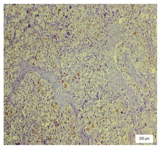 Ki 67 positivity in tumor cells (×100).