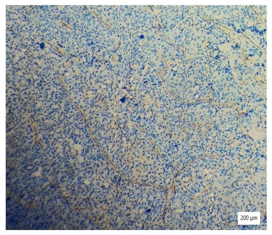 Negative vimentin in tumor cells (×100).