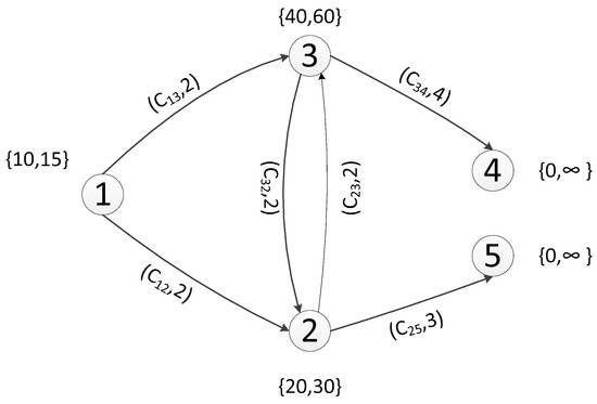 In order to verify the effectiveness and calculation process of the personalized exit selection preference model, a simple building layout was selected, as shown in Figure 1. There were 3 evacuation origins (1, 2, and 3, respectively) and 2 evacuation destinations (4 and 5, respectively), as shown in Table 3 and Figure 1.