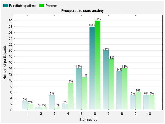- Charana, A.; Tripsianis, G.; Matziou, V.; Vaos, G.; Iatrou, C.; Chloropoulou, P. Preoperative Anxiety in Greek Children and Their Parents When Presenting for Routine Surgery. Anesthesiol. Res. Pract. 2018, 2018, 5135203. [Google Scholar] [CrossRef]