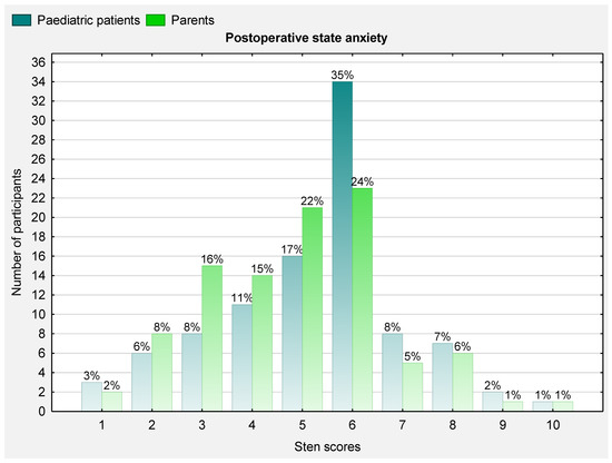 | Postoperative state anxiety (sten; range 1–10) | 6 [4; 6] | 5 [3; 6] |