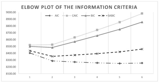 Elbow plot of the information criteria.