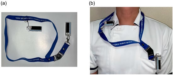 A unique initiative of the surveyed hospital. (a) A strap connects both the main and additional dosimeters. (b) The use of this strap prevents physicians from forgetting to wear the additional dosimeter.