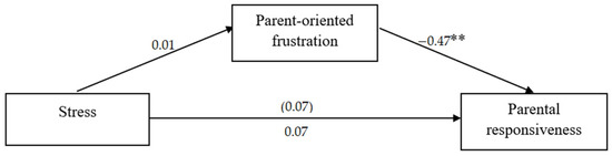 Additionally, two mediation analyses were performed, separately for women and for men, in which stress was the independent variable, parent-oriented frustration was the mediator, and parental responsiveness was the dependent variable. The mediation analyses were conducted using the PROCESS macro [34].