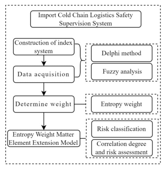 With the high-speed development of fresh-keeping technology and logistics, the quality of cold chain food and logistics service level has attracted people’s attention. Since the outbreak of COVID-19, the demand for a stable food supply and safe vaccine delivery has put forward higher requirements for the safety of international cold chain logistics (ICCL). However, disease control processes burden ICCL supervision and bring uncertainty to cold chain stability. For many countries, it is continuously a challenge to avoid COVID-19 import risks through ICCL. From the general perspective, the “cold chain break” and “fake cold chain” problems still exist, and there are many safety hazards in the ICCL process. Therefore, its safety supervision urgently needs to be strengthened. Based on the Entropy Weight Matter Element Extension Model (EWMEEM), this paper constructs a safety supervision index system by analyzing the risks in the ICCL process, and takes Shanghai as an example to evaluate the risk level of ICCL-SSS.