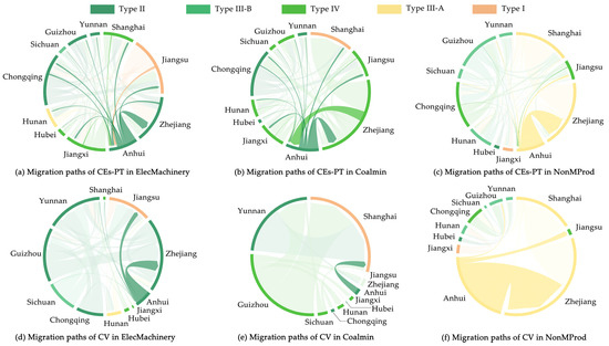 Migration paths of ECEs-IPT and CV in major industry sectors in Anhui among the YREB in 2017.