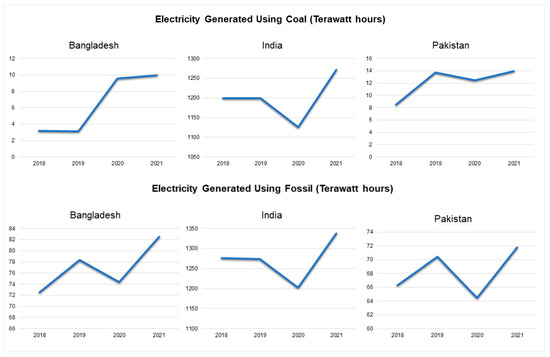 3.1.3. Electricity Generated Using Coal and Fossil in Terawatt Hours (2018–2021)