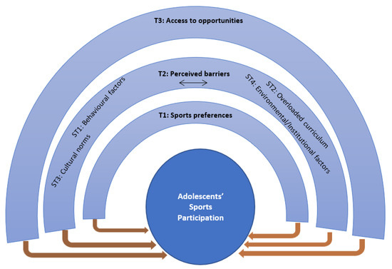 Thematic map of identified themes for sports participation (T: theme; ST: subtheme).