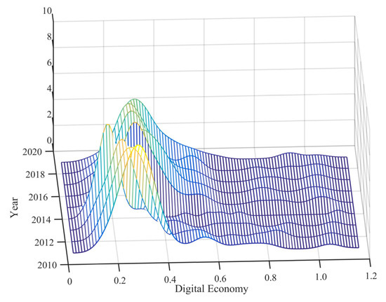Kernel density estimation of the digital economy level and PM2.5 concentration.