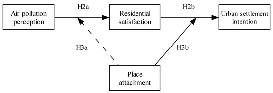 Based on data obtained from 987 questionnaires collected from a sample group of young talent in Hangzhou, this study explored the influence of perceived air quality on urban settlement intentions. Hypotheses 1, 2, 2a, 2b, 3 and 3b were supported, whereas Hypothesis 3a was rejected. The findings of this study are as follows. First, air pollution perceptions significantly influence the urban settlement intentions of young talent; the poorer their air pollution perception, the weaker the urban settlement intentions. Second, residential satisfaction significantly mediates the relationship between air pollution perception and urban settlement intentions. In other words, a poorer air quality perception reduces residential satisfaction among young talent, thus weakening their urban settlement intentions. In conclusion, place attachment has a significant moderating effect on the relationship between residential satisfaction and settlement intentions. However, it insignificantly affects the relationship between air pollution perception and residential satisfaction. Compared with a weaker level of place attachment, a greater level of place attachment does not change the dissatisfaction associated with poorer perceived air quality. Instead, it can weaken the effect that this dissatisfaction has on settlement intentions.