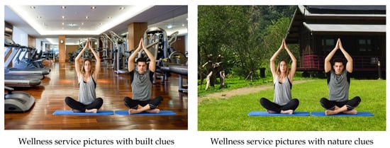 49]. Therefore, wellness service images with clues suggesting an experience in nature are expected to have a higher impact on older adults’ willingness to pay more than those with indoor sports clues. Based on the previous discussion, the following hypothesis is proposed.