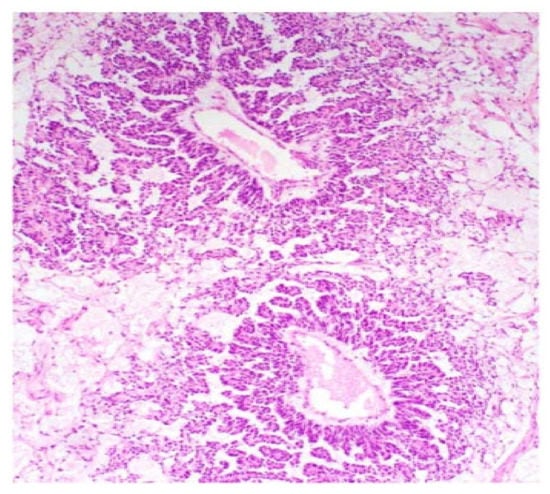 | Alveolar-glandular | Large cystic/irregular alveolar spaces which are lined by single or multiple layers of columnar cells |